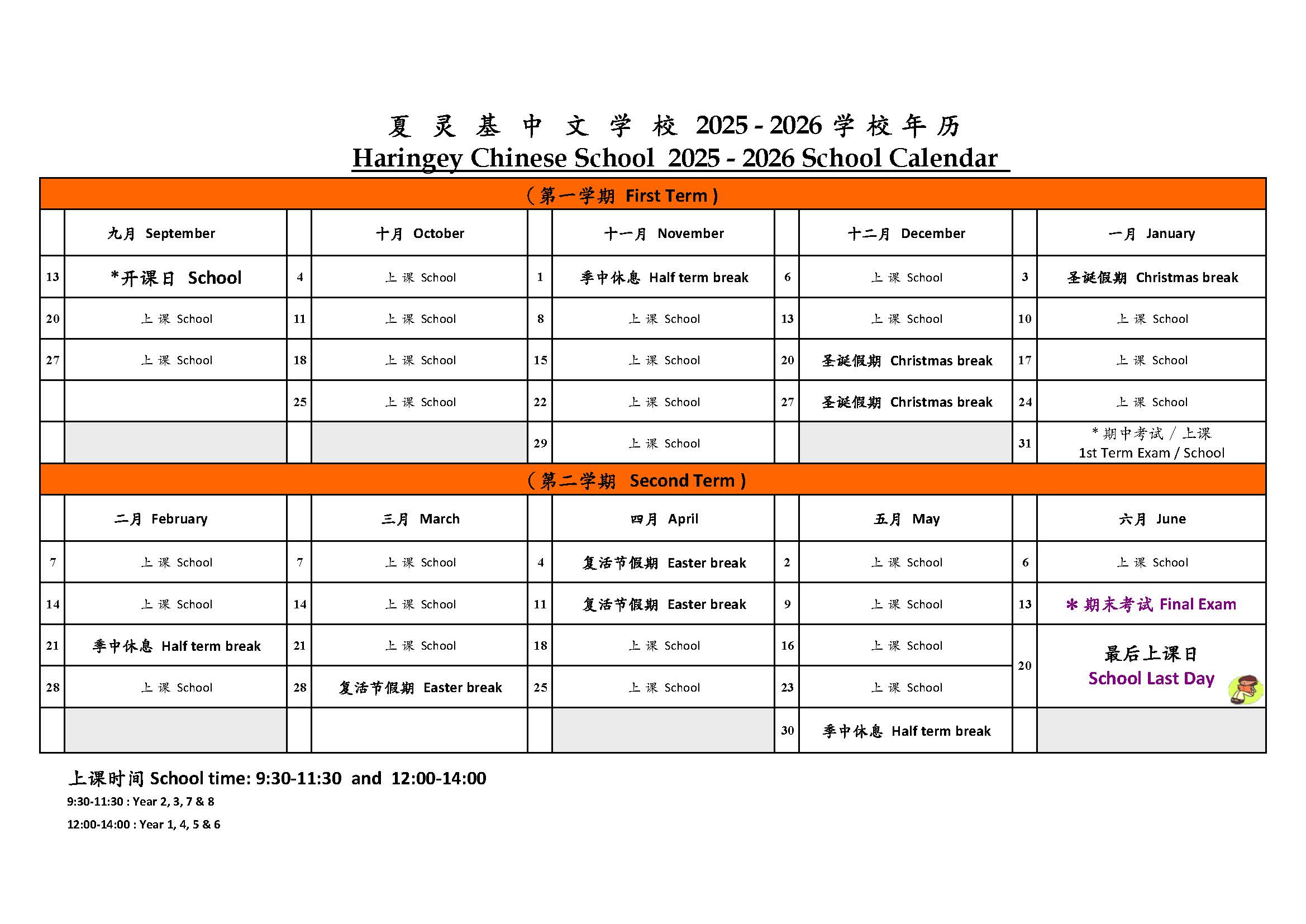 The new school year at Haringey Chinese School will start on 13th September 2025.